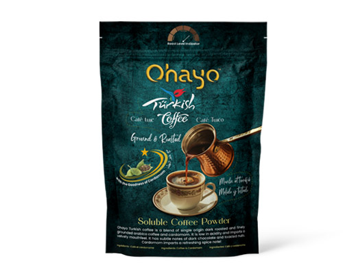 Ohayo Turkish coffee is a blend of single origin dark roasted and finely grounded arabica coffee and cardamom. It is low in acidity and imparts a velvety mouthfeel. It has subtle notes of dark chocolate and toasted nuts. Cardomom imparts a refreshing spice note!